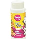 Seca Pipi é um retentor para absorção de urina e outros líquidos expelidos pelos animais, transformando-os em um gel seco que pode ser varrido, aspirado ou removido com a pá de limpeza, o que evita contato direto com as mãos. Além de limpar o local, também higieniza e remove o odor, deixando um agradável cheiro de limpeza.